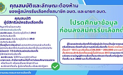 ประชาสัมพันธ์ คุณสมบัติและลักษณะต้องห้ามของผู้สมัครรับเลือกตั้งสมาชิก อบต.และนายก อบต.