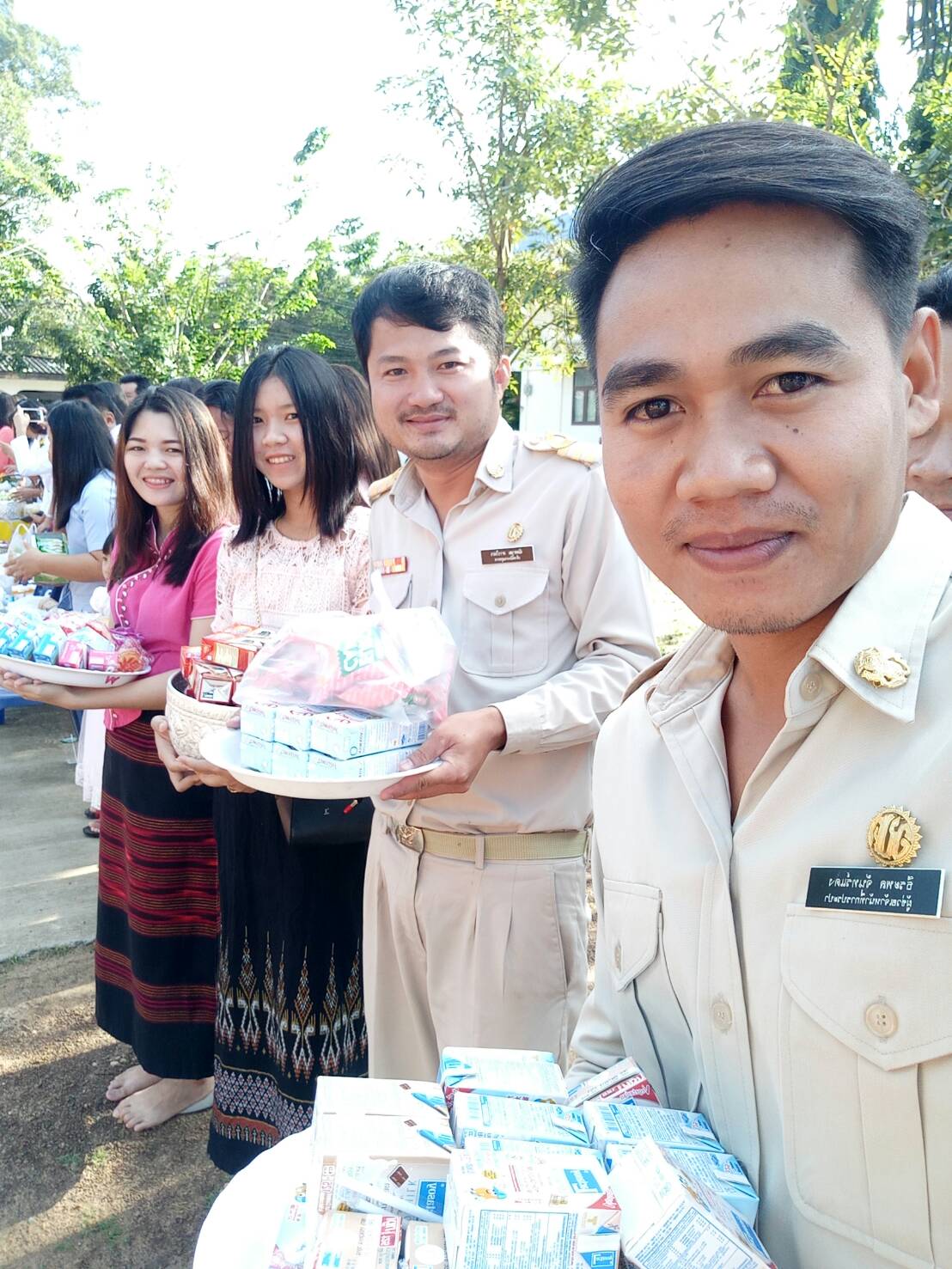 พร้อมด้วย สมาชิก อบต. พนักงานส่วนตำบลและพนักงานจ้าง ร่วมพิธีทำบุญตักบาตร